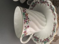 Чашка с блюдцем изготовлена на Императорском фарфоровом заводе (г. Санкт-Петербург) из тонкостенного костяного фарфора. Для декорирования используется надглазурная деколь, отводка золотом. Объем чашки - 155 мл, высота - 6.6 см, диаметр блюдца - 12.6 см. Обратите внимание, объем измеряется от дна до верхнего края изделия, полезный объем может быть на 10-15% меньше заявленного производителем.