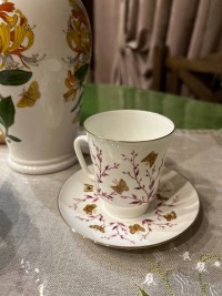 Чашка с блюдцем изготовлена на Императорском фарфоровом заводе (г. Санкт-Петербург) из тонкостенного костяного фарфора. Для декорирования используется надглазурная деколь, отводка золотом. Объем чашки - 165 мл, высота - 7.7 см, диаметр блюдца - 12.1 см. Обратите внимание, объем измеряется от дна до верхнего края изделия, полезный объем может быть на 10-15% меньше заявленного производителем.