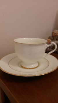 Чашка с блюдцем изготовлена на Императорском фарфоровом заводе (г. Санкт-Петербург) из тонкостенного костяного фарфора. Для декорирования используется отводка золотом. Объем чашки - 240 мл, высота - 7.5 см, диаметр блюдца - 16.6 см. Обратите внимание, объем измеряется от дна до верхнего края изделия, полезный объем может быть на 10-15% меньше заявленного производителем.