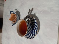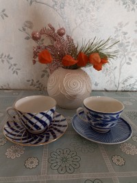 Чашка с блюдцем изготовлена на Императорском фарфоровом заводе (г. Санкт-Петербург) из классического твердого фарфора. Для декорирования используется подглазурная деколь, роспись золотом. Объем чашки - 250 мл, высота - 6.8 см, диаметр блюдца - 14.4 см. Обратите внимание, объем измеряется от дна до верхнего края изделия, полезный объем может быть на 10-15% меньше заявленного производителем.
