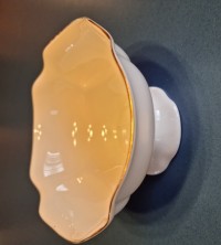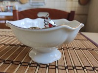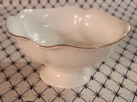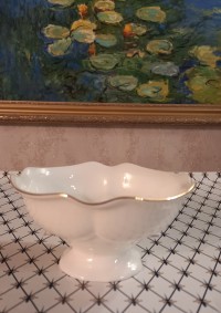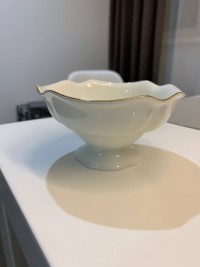 Ваза изготовлена на Императорском фарфоровом заводе из костяного фафрора. Форма отливается вручную. Для декорирования используется отводка золотом. Автор формы - Юрий Троицкий. Выпуск изделия начался в 1995 году. Диаметр - 12.5 см.