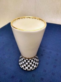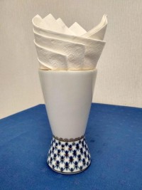 Ваза изготовлена на Императорском фарфоровом заводе из твердого фарфора. Для декорирования используется подглазурная деколь, роспись золотом. Автор рисунка - Анна Яцкевич, автор формы - Анна Лепорская. Высота - 12 см.