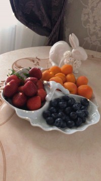 Менажница изготовлена на заводе Deshoulieres / Дезульер (г. Фоэси, регион Центр - Долина Луары, Франция) из классического твердого фарфора с рельефным рисунком в виде фруктов, ягод и листьев. Размер менажницы - 26.7 х 25.8 см.