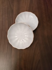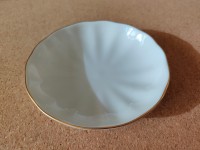 Розетка изготовлена на Императорском фарфоровом заводе из твердого фарфора. Для декорирования используется отводка золотом. Автор формы - Серафима Яковлева. Выпуск изделия начался в 1936 году. Диаметр - 9.8 см.