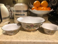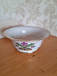 Салатник изготовлен на Императорском фарфоровом заводе из твердого фарфора. Форма отливается вручную. Для декорирования используется надглазурная деколь, ручная роспись. Автор рисунка - Галина Шуляк. Выпуск изделия начался в 2003 году. Объем - 1500 мл, высота - 9.1 см.