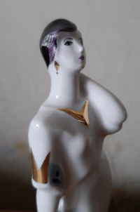 Скульптура изготовлена на Императорском фарфоровом заводе из твердого фарфора. Для декорирования используется ручная надглазурная роспись. Автор формы и росписи - Эльвира Еропкина. Выпуск изделия начался в 1986 году. Авторский оригинал хранится в коллекции Государственного Эрмитажа. Высота - 20.8 см.
