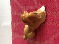 Скульптура изготовлена на Императорском фарфоровом заводе из мягкого фарфора. Для декорирования используется ручная подглазурная роспись. Автор формы и росписи - Татьяна Линчевская. Выпуск изделия начался в 1980-х годах. Высота - 6.8 см.