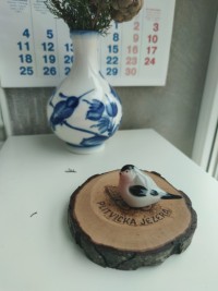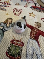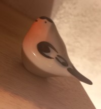 Скульптура изготовлена на Императорском фарфоровом заводе из мягкого фарфора. Для декорирования используется ручная подглазурная роспись. Автор формы - Павел Веселов, автор росписи - Виктор Жбанов. Выпуск изделия начался в 1971 году. Высота - 3.6 см.