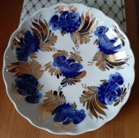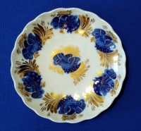 Сухарница изготовлена на Императорском фарфоровом заводе из твердого фарфора. Для декорирования используется подглазурная деколь, роспись золотом. Автор рисунка - Нина Славина, автор формы - Серафима Яковлева. Выпуск изделия начался в 1972 году. Диаметр - 21.5 см.