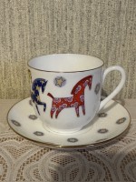 Эта кофейная пара, посвященная Году Лошади, станет изысканным пополнением вашей коллекции. Изделие создано из благородного костяного фарфора, который отличает особая белизна и утонченная легкость. Изящная форма «Ландыш», автором которой является Э.М. Криммер, была возрождена по архивным образцам и прекрасно лежит в руке.