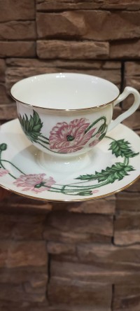 Очень нежная чайная пара, тонкий фарфор, качественная работа. Рисунок не очень яркий. Объем подходит и для кофе и для чая.