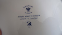 Прекрасная тарелка из высококачественного фарфора, довольно тяжелая по весу, замечательная роспись, все предельно аккуратно. Отличный подарок любителям истории! Подлинник хранится в Эрмитаже.