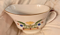 Соусник изготовлен на Императорском фарфоровом заводе из твердого фарфора. Для декорирования используется надглазурная деколь, роспись золотом. Автор рисунка - Галина Шуляк, автор формы - Анна Лепорская. Выпуск изделия начался в 2003 году. Объем - 400 мл, высота - 9 см.
