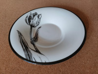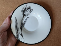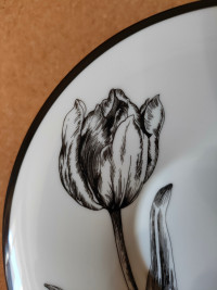 Волшебный сад одна из любимых коллекций по нескольким причинам - форма, рисунки (особенно тюльпаны, причем черные рисунки мне нравятся больше цветных, тк не имеют пикселизации, хотя цветные тюльпаны хороши своими оттенками), а еще их можно мыть в посудомойке (что лично мне очень облегчает жизнь) <br /> Но перед тем, как начать собирать сервиз, еще весной я тщательно выискивала фото формы блюдец Юлия, на фото они часто казались с немного вывернутыми краями, но это визуальный обман, на моем фото видно как они выглядят, я специально объектив направила строго перпендикулярно торцевого края блюдца.<br /> Черный цвет, к слову, как бы несколько разбавленный и можно сказать с теплым подтоном. К сожалению этого мой смартфон передать не смог
