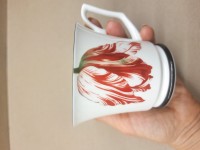 Очень красивая и изящная чашка. Сделана из костяного фарфора. Фарфор тонкий, просвечивается если смотреть на свет. Принт четкий, не размытый. Единственный ее недостаток - это неудобная ручка. Даже мои тонкие женские пальчики в верхнюю часть ручки не пролезают и возникают некоторые неудобства как бы так взять чашку с кипятком чтобы донести и ничего не разлить. Чашка пришла в фирменной коробке. Упакована очень хорошо.