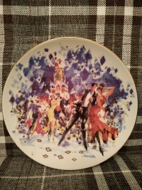 Дамы и кавалеры, изображенные на декоративной тарелке, как будто из другой эпохи и из другой страны. Вроде бы не соединяются танцующие пары и башня Кремля на заднем плане, но в этом как раз и есть прелесть изображения. Фантастический сюжет!