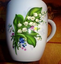 Кружка изготовлена на Добрушском фарфоровом заводе (г. Добруш, Республика Беларусь) из классического твердого фарфора с декорированием надглазурной деколью. Объем кружки - 300 мл, высота - 9.7 см. Обратите внимание, объем кружки указывается до краев, полезный объем может быть на 10-15% меньше заявленного производителем.