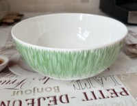 Салатник изготовлен на Императорском фарфоровом заводе из костяного фафрора. Для декорирования используется деколь инглазурными красками. Диаметр - 16 см, высота - 7 см.