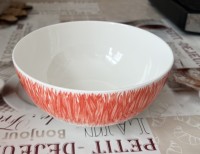 Салатник изготовлен на Императорском фарфоровом заводе из костяного фафрора. Для декорирования используется деколь инглазурными красками. Диаметр - 16 см, высота - 7 см.
