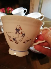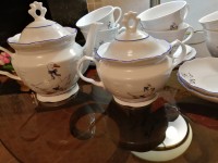 Сервиз изготовлен на Добрушском фарфоровом заводе (г. Добруш, Республика Беларусь) из классического твердого фарфора с декорированием надглазурной деколью и отводкой краской по краю изделий.