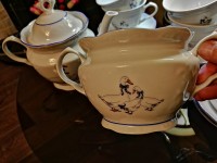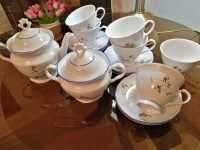 Сервиз на 6 персон состоит из 14 предметов: чайник (800 мл), сахарница (550 мл), 6 чашек (250 мл), 6 блюдец (15 см).