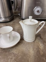 Игрушечный, миниатюрный сливочник из костяного фарфора. Удобен в использовании.
